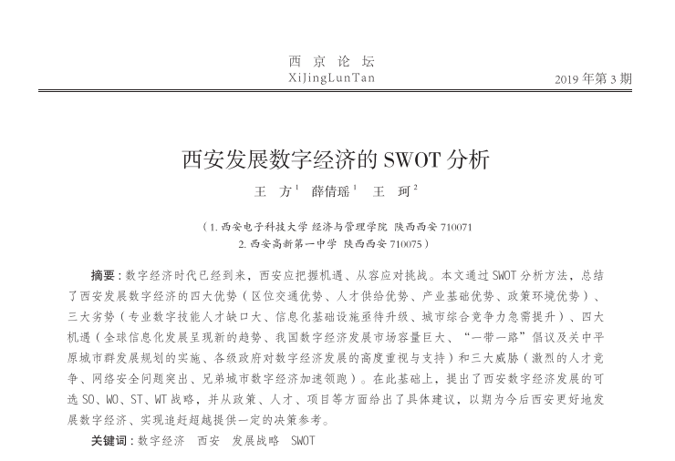 西安发展数字经济的SWOT分析