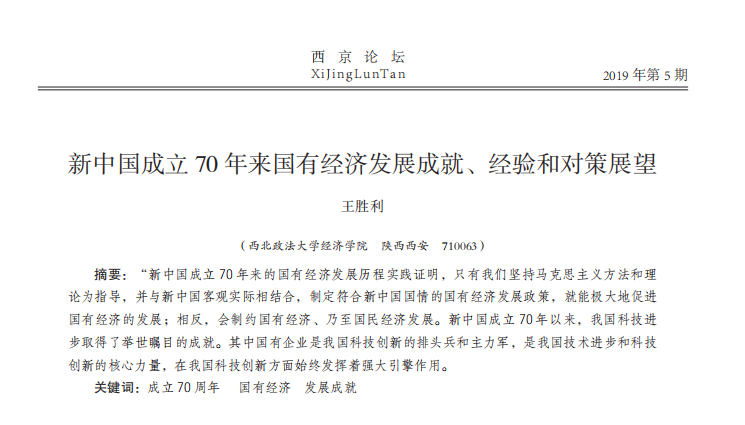 新中国成立70年来国有经济发展成就、经验和对策展望