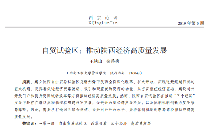 自贸试验区:推动陕西经济高质量发展