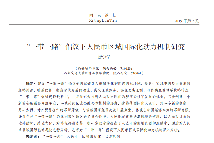 “一带一路”倡议下人民币区域国际化动力机制研究