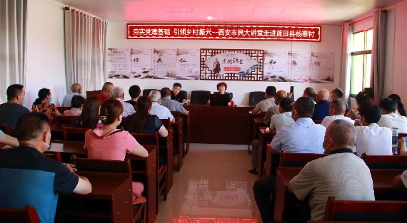 杨寨村位于玉山镇区东北3公里处,全村共379户1566人,党员42名,总面积1630亩,主要农作物为小麦、玉米、油菜、核桃。近年来,杨寨村坚持党建引领,通过实施党员分类化管理、产业规?;⒄?、环境品质化提升、乡风评比化彰显、治理现代化转变等“五化”工程,村上各项工作取得明显成效,并先后荣获“国家森林乡村”、“省级党组织标准化建设示范村”、“西安市美丽党建示范村”、“蓝田县干净整洁村”等多项荣誉称号。市社科院发挥自身优势,将“市民大讲堂”这一普及先进社科知识的品牌项目不断推向深入。此次李清芳教授所做的题为《夯实农村党建基础引领乡村全面振兴》的专题辅导讲座,从乡村振兴的基层党组织建设、党员干部队伍建设、政治建设、思想建设、作风建设、制度建设等六个方面进行了深入剖析和讲解,全面揭示了基层党建工作在乡村振兴中的重要引领作用。