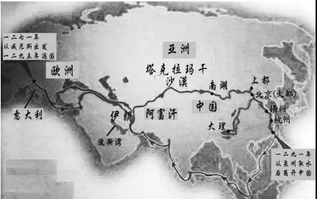 公元1266年,蒙古帝国的忽必烈大汗在元大都(今北京)接见了旅行家马可·波罗的父亲和叔父,并请求他们把他的亲笔书信交于罗马教皇。马可·波罗一行人在蒙古帝国所建立的完备的驿站系统①的支持下,手持大汗手书金牌开始了西行之旅。